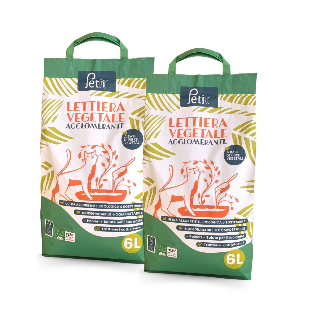 Il bundle 2×6Lt è la scelta più efficiente per fare scorta: stessa resa della lettiera vegetale Petit (assorbenza elevata, agglomerati compatti, anti-odore), con meno riordini e gestione più comoda nel tempo. Scorta 2×6Lt (meno riordini) 100% vegetale, biodegradabile e compostabile Anti-odore + antibatterico naturale Senza polveri e profumi artificiali Agglomerati compatti, pulizia facile