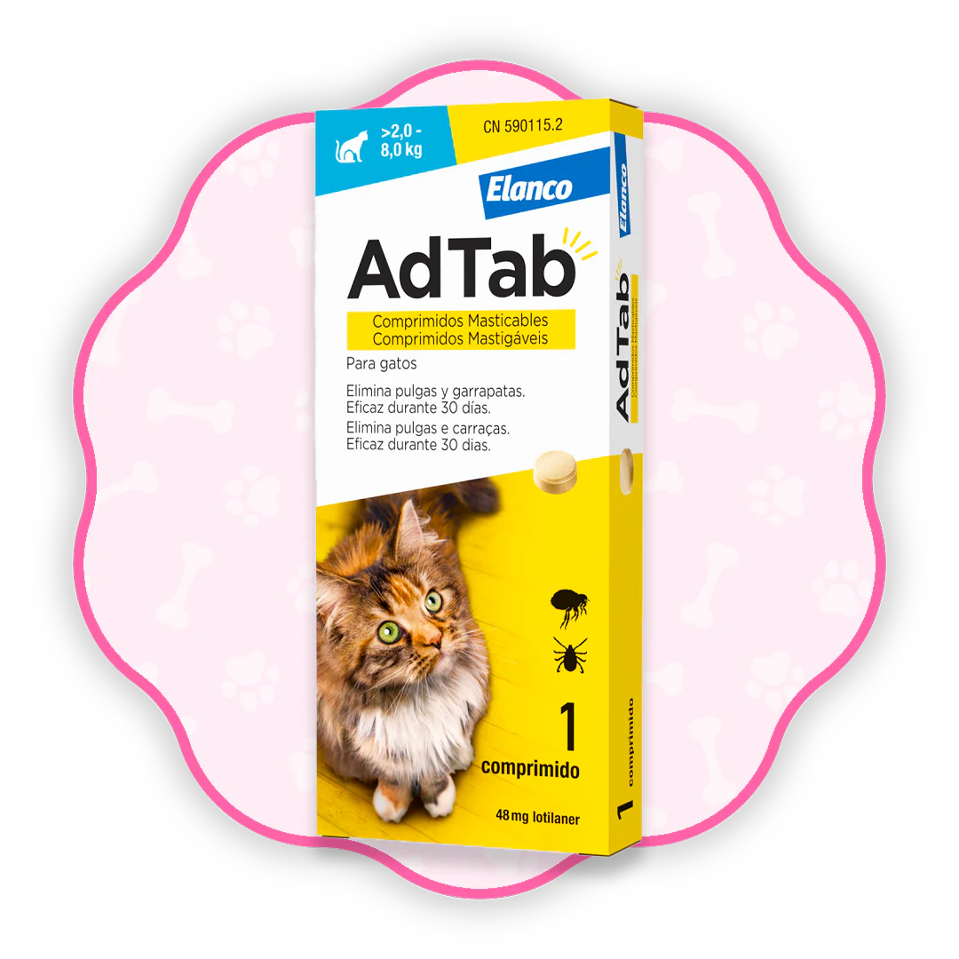 AdTab รจ un antiparassitario innovativo in forma di compresse masticabili, aromatizzate al saporito gusto di carne, progettato specificamente per offrire ai gatti un mese intero di protezione da pulci e zecche. Questa soluzione di facile somministrazione si distingue per la sua efficacia a lungo termine, rendendola un’opzione ideale per i proprietari alla ricerca di un trattamento antiparassitario valido e senza complicazioni.