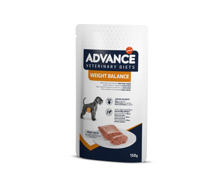 ADVANCE VETERINARY DIETS WEIGHT BALANCE è un alimento dietetico completo e bilanciato, formulato per ridurre il peso in eccesso e regolare il metabolismo lipidico in caso di iperlipidemia, con bassi livelli energetici e un elevato contenuto di proteine e fibre.