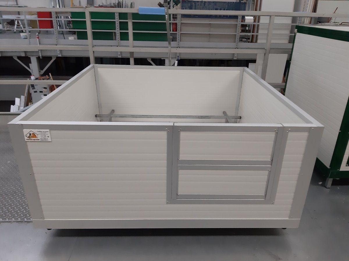 SALA PARTO in alluminio e pannello coibentato, con doppio sportello sul fronte di misure L50 H36cm con 14cm di fascia chiusa inferiore. Nel riquadro “descrizione” qui in basso sono riportate tutte le caratteristiche tecniche. Realizzazioni su misura.