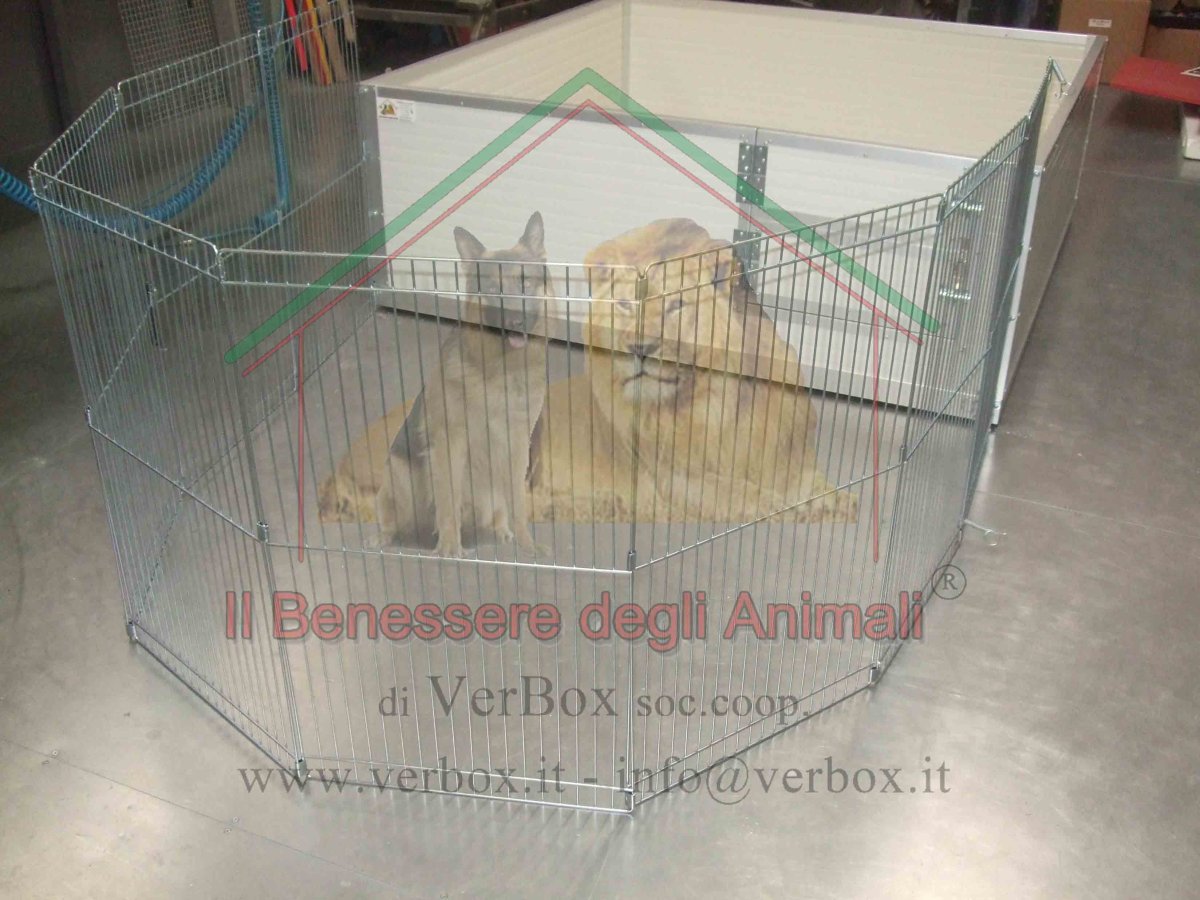 – bordo salva cuccioli in tubolare quadro 20×20 a 4 lati con piedi da 10cm e distanza rispetto al perimetro interno di 10cm sui 4 lati