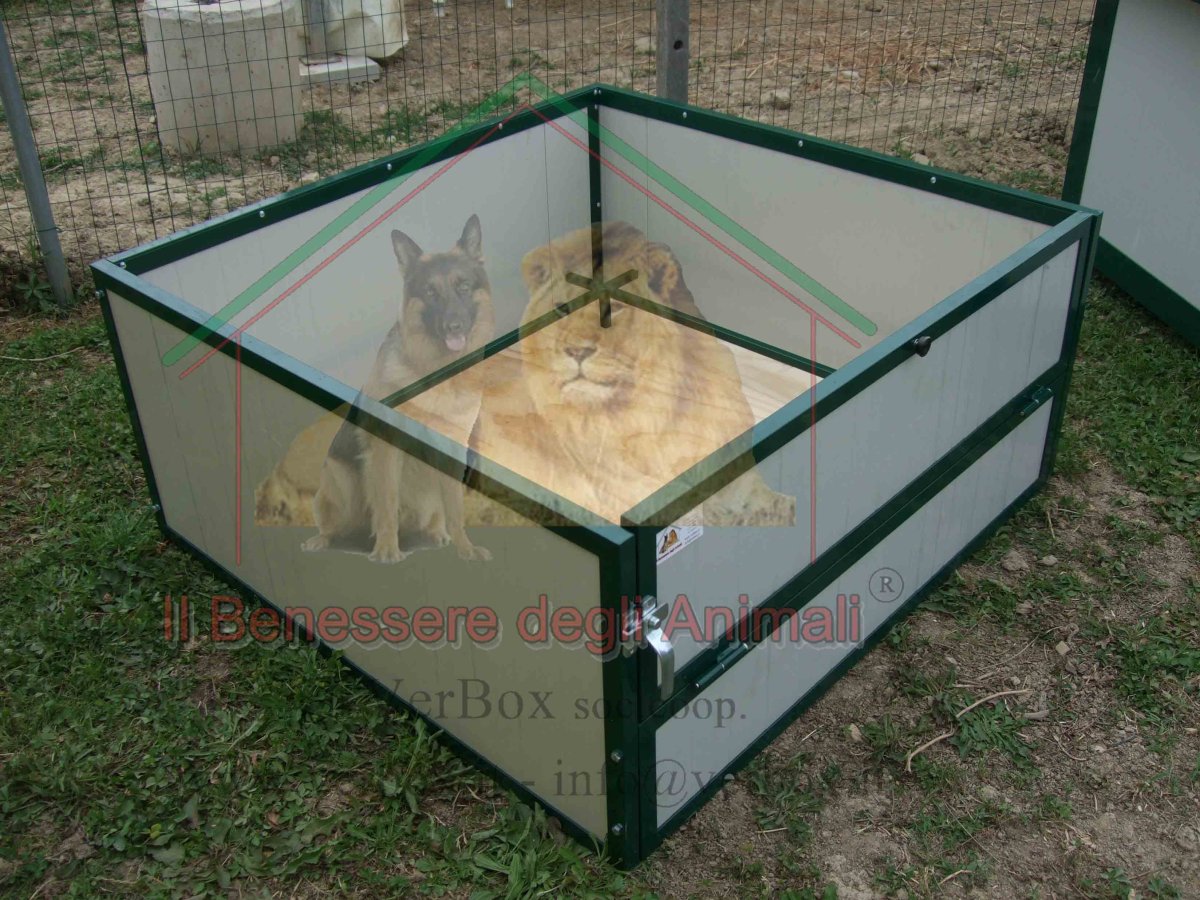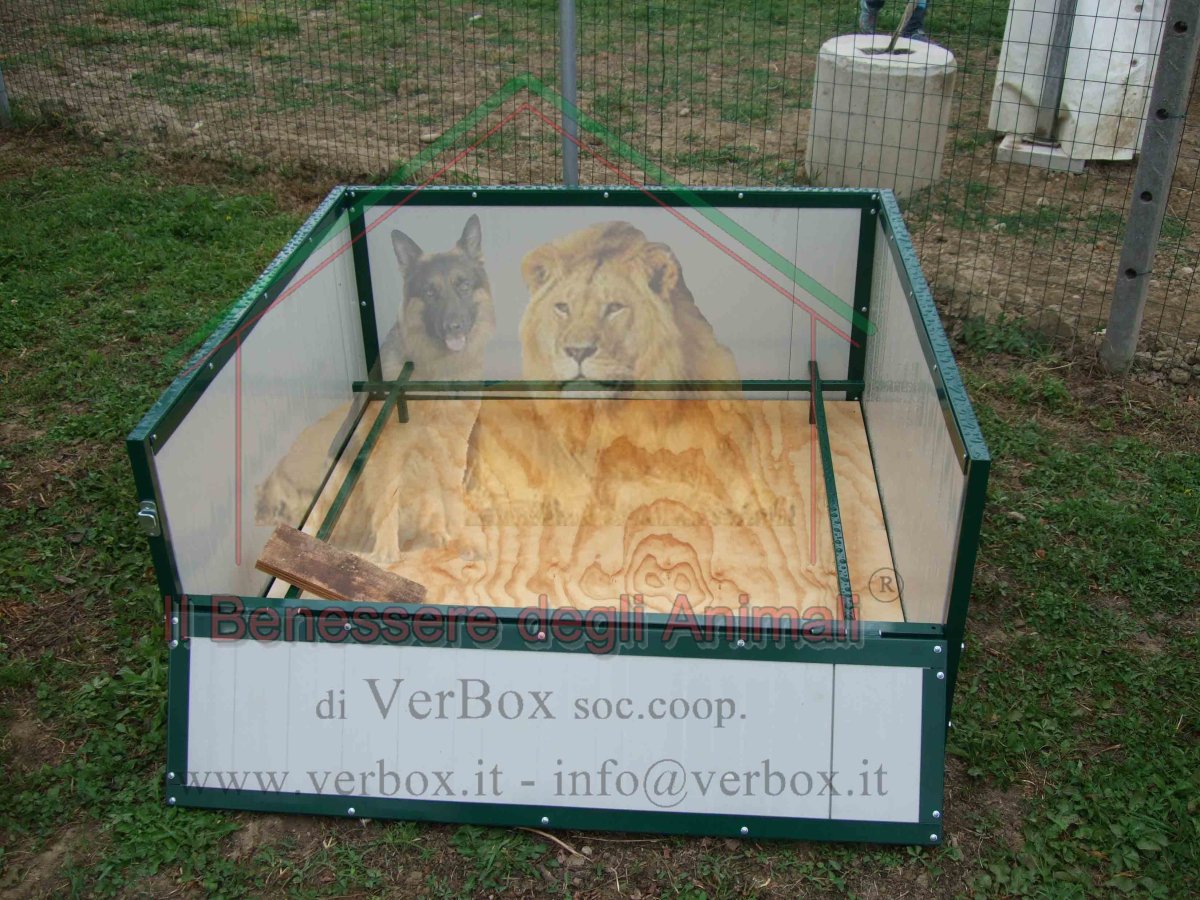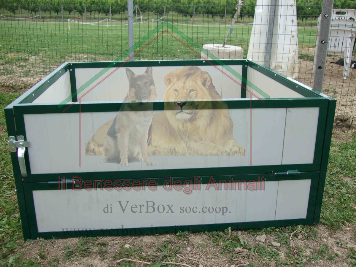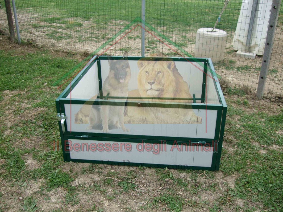 Cassa parto per cane, sala parto per la nascita e la gestione dei cuccioli e della fattrice. Il modello che segue è quello con ingresso mediante anta a ribalta, che funge da rampa per i cuccioli ai primi passi
