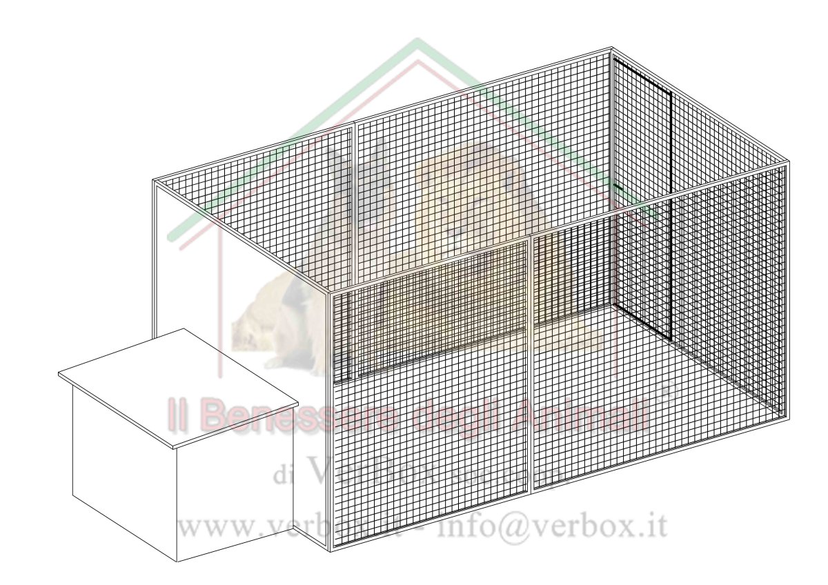 Recinto H184cm, di cui 5cm di piede, nelle seguenti taglie (esclusa la cuccia): 2×2; 2×2.5; 2x3mt