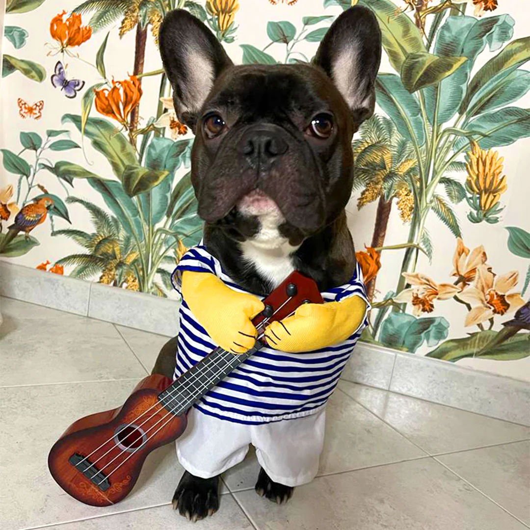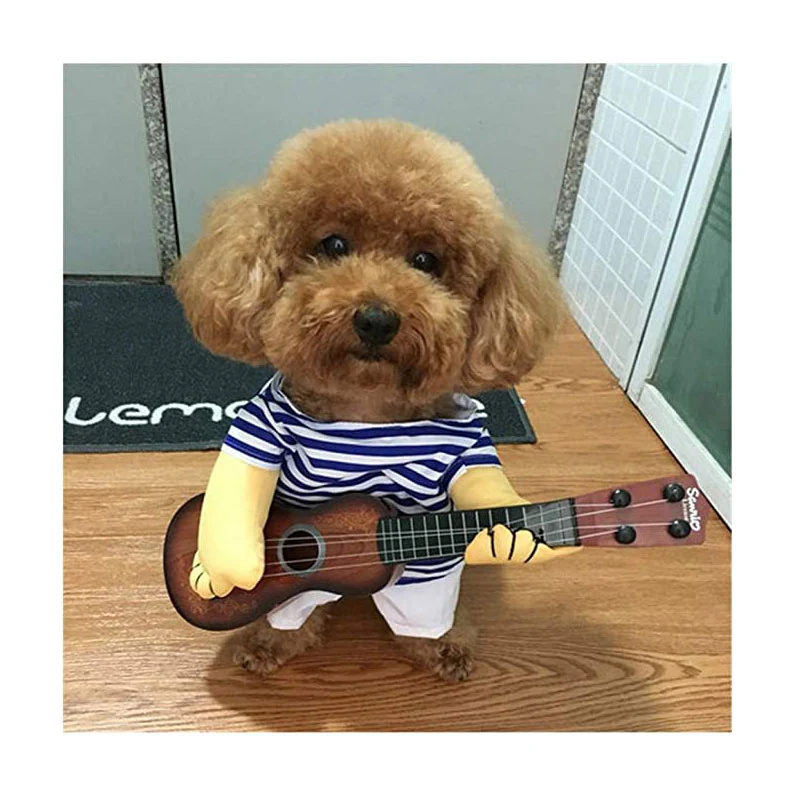 Simpatico costume da chitarrista per gatti e cani di piccola e media taglia.