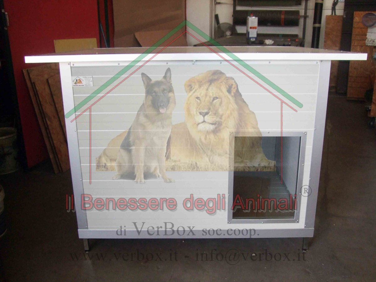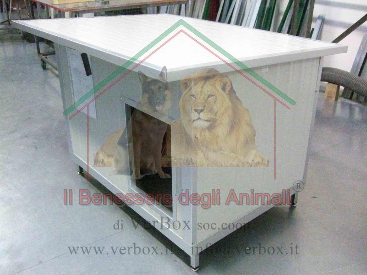Cuccia in coibentato sp.25mm + profili in ALLUMINIO, colore grigio satinato (silver), rappresenta il top di gamma della Verbox. Piede alto, sostegni per sorreggere il tetto nelle operazioni di pulizia, blocco anti vento, piede alto in acciaio zincato regolabile in altezza. Ideale per l’esterno grazie al tetto inclinato e sporgente sui 4 lati, in modo particolare sul fronte. Realizzazioni su misura. Nel riquadro “descrizione” qui in basso sono riportate tutte le caratteristiche tecniche. Nel riquadro “descrizione” qui in basso sono riportate tutte le caratteristiche tecniche.