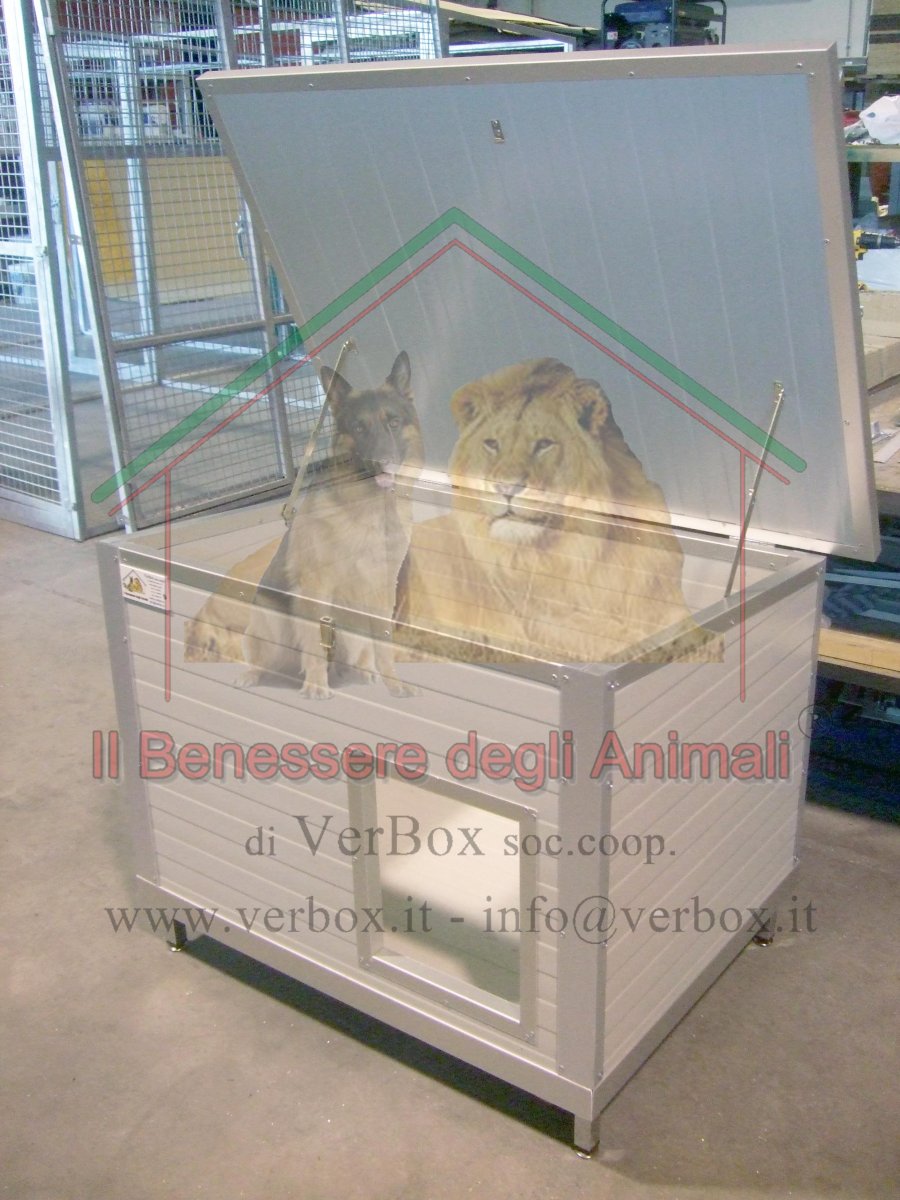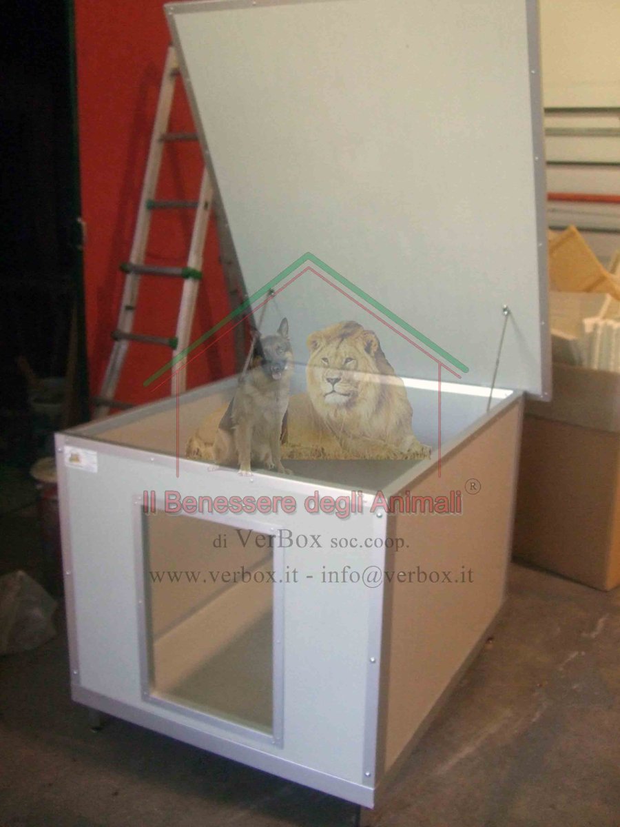 – tetto apribile con cerniere quadre fissate nel retro della cuccia.