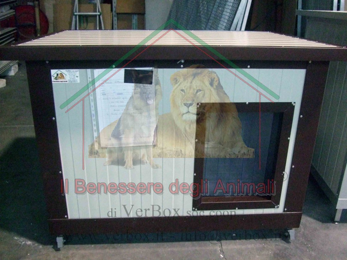 Cuccia in coibentato sp.40mm + profili in ALLUMINIO, colore marrone, rappresenta il top di gamma della Verbox. Piede alto, sostegni per sorreggere il tetto nelle operazioni di pulizia, blocco anti vento, piede alto in acciaio zincato regolabile in altezza. Ideale per l’esterno grazie al tetto inclinato e sporgente sui 4 lati, in modo particolare sul fronte. Realizzazioni su misura. Nel riquadro “descrizione” qui in basso sono riportate tutte le caratteristiche tecniche.