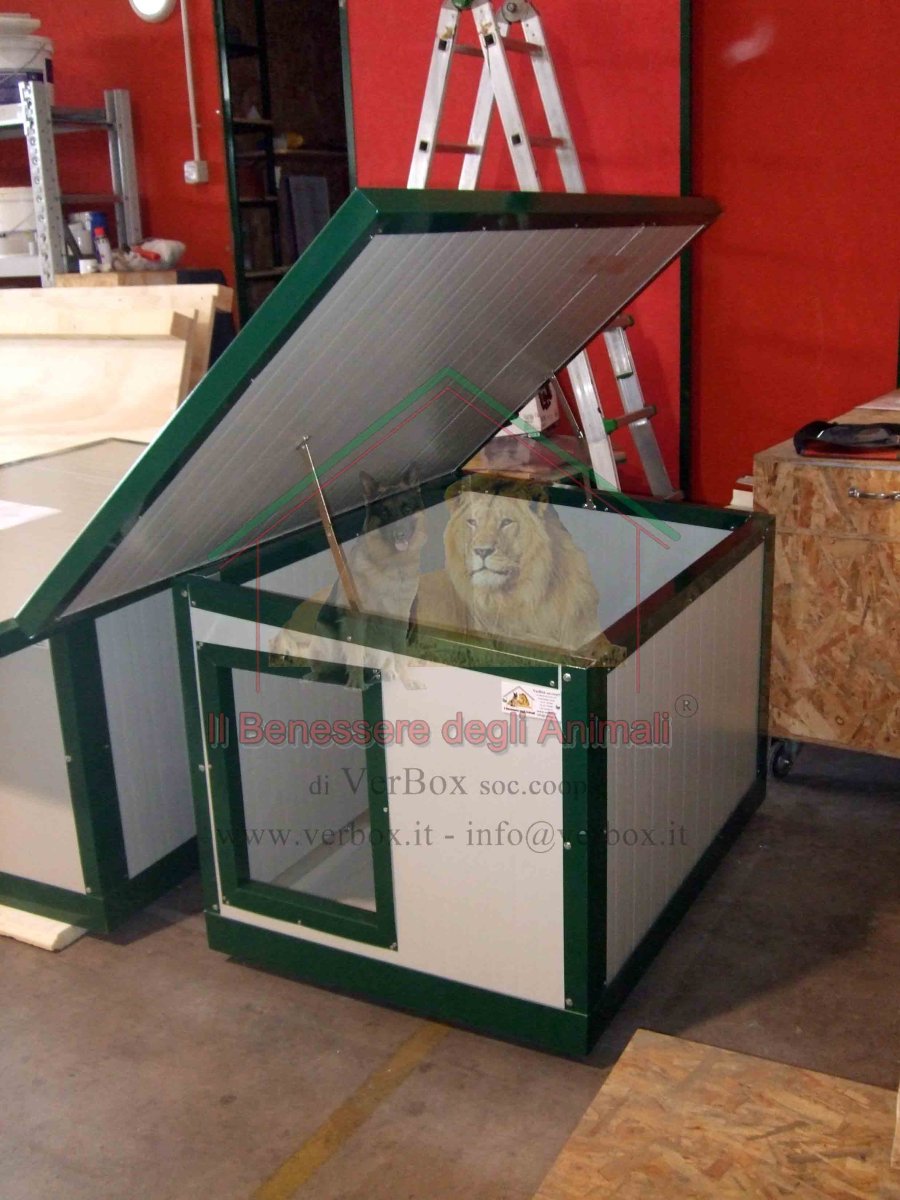 – tetto apribile con cerniere quadre fissate nel retro della cuccia.
