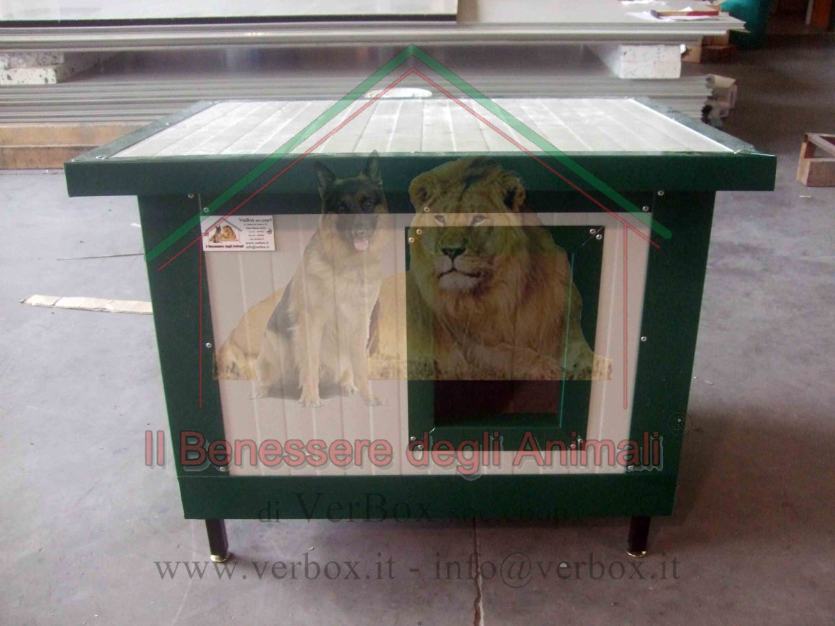 Cuccia in coibentato sp.40mm + profili in ALLUMINIO, colore verde muschio ral6005, rappresenta il top di gamma della Verbox. Piede alto, sostegni per sorreggere il tetto nelle operazioni di pulizia, blocco anti vento, piede alto in acciaio zincato regolabile in altezza. Ideale per l’esterno grazie al tetto inclinato e sporgente sui 4 lati, in modo particolare sul fronte. Realizzazioni su misura. Nel riquadro “descrizione” qui in basso sono riportate tutte le caratteristiche tecniche.