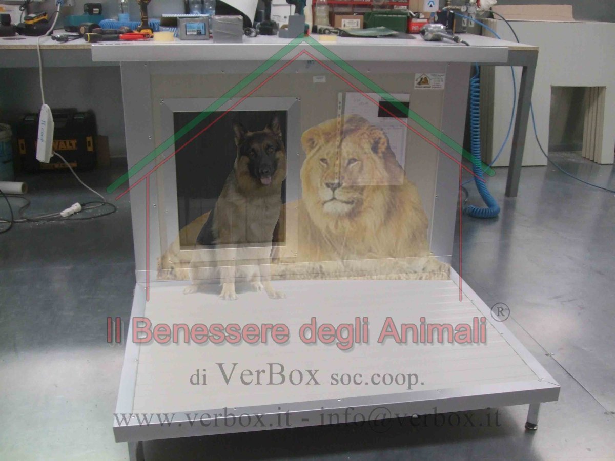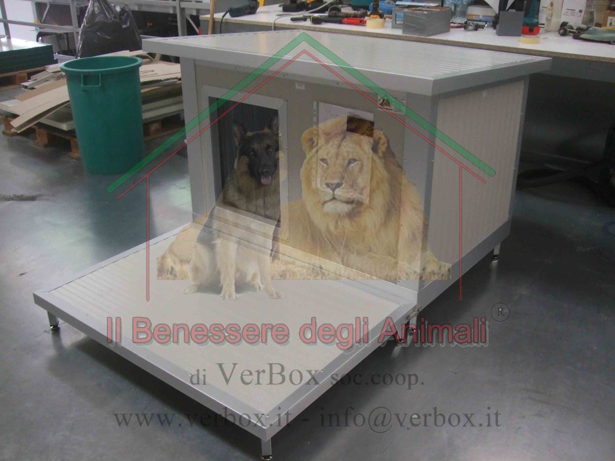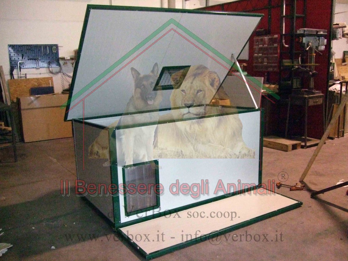 – tetto apribile con cerniere quadre fissate nel retro della cuccia.