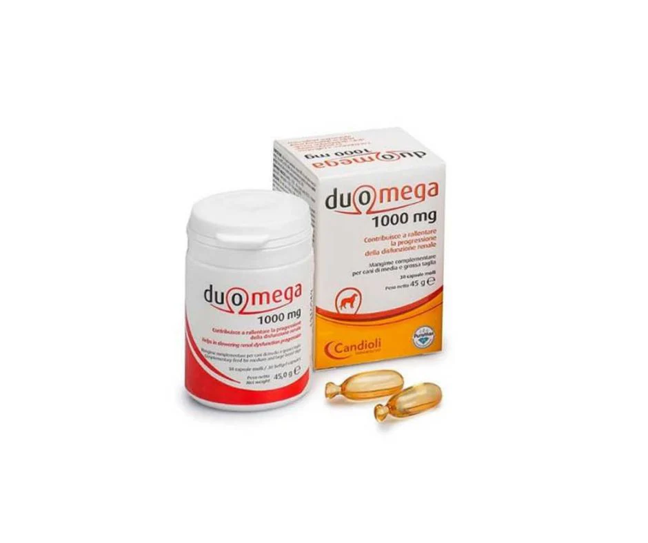 • Cani oltre 40 kg di peso corporeo: 4 capsule molli Duomega 1000 mg al giorno.