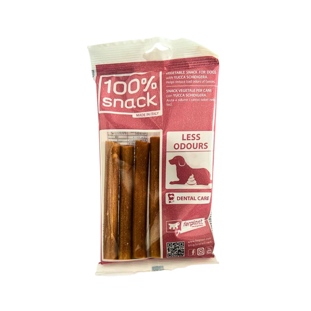 Naturali e salutari, gli snack dentali vegetariani per cani della gamma 100% Snack di Ferplast sono studiati per soddisfare tutte le esigenze grazie alle forme innovative e agli utili ingredienti funzionali. Tanti benefici, salute e gusto in un unico prodotto! Gli snack vegetariani per cani 100% Snack assicurano l’igiene dentale grazie all’azione meccanica della masticazione, sono efficaci nel rimuovere la placca e producono inoltre un effetto massaggiante sulle gengive.