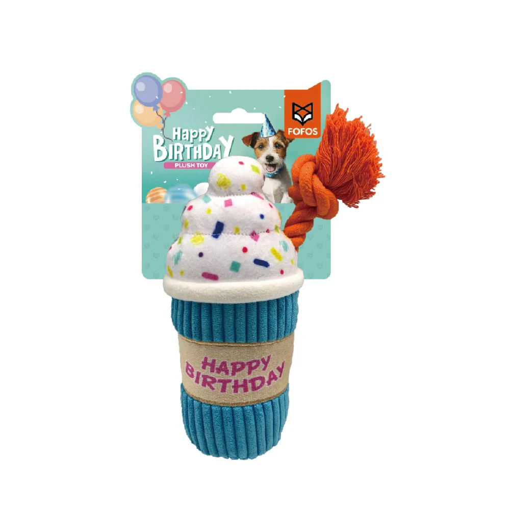 Fofos drink happy birthday con squeaker interno ideale per far divertire il tuo amico a quattro zampe nel suo giorno di festa..