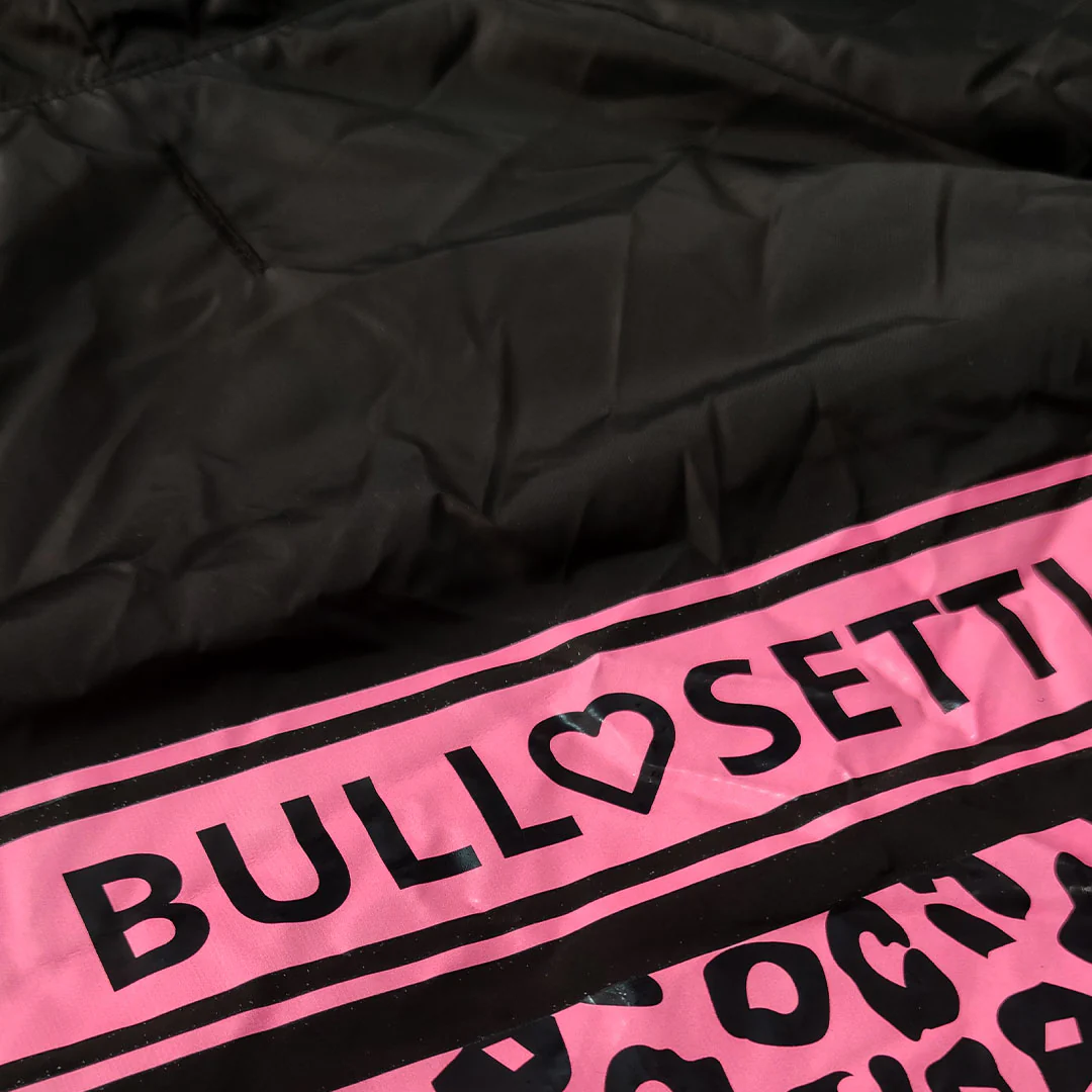 Impermeabile maculato Bullosetti – con maniche e cappuccio – nero e rosa