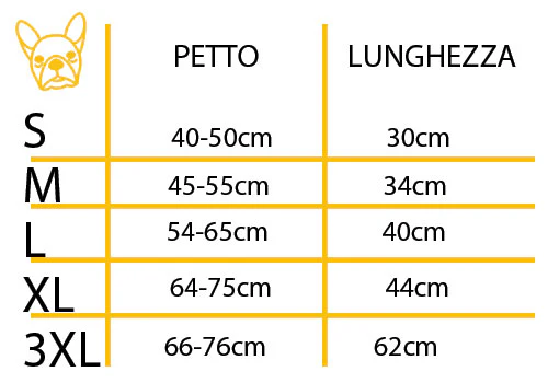 Guida alle taglie (Prendi sempre una taglia più grande se sei indeciso/a)