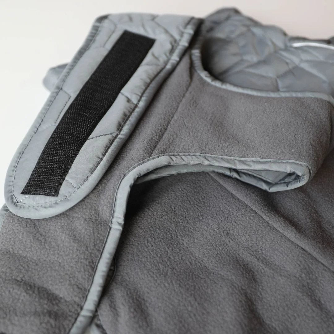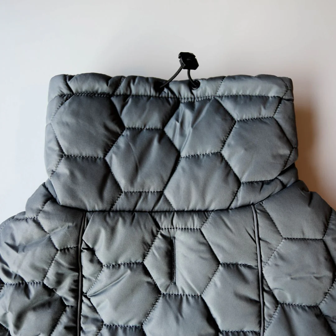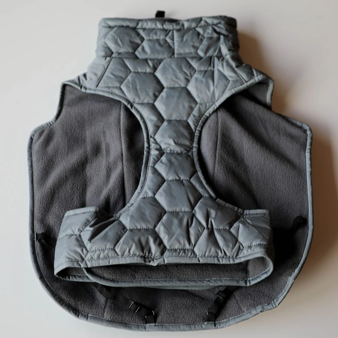 L’interno in pile felpato aiuta a trattenere il calore, mentre il collo regolabile con elastico garantisce una vestibilità più precisa. Gli elastici per le zampe aiutano a mantenere il cappotto ben fermo durante le passeggiate.