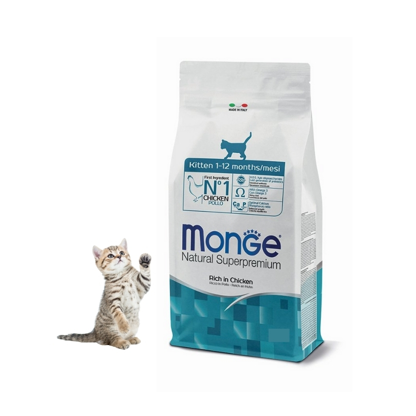 Monge Natural Superpremium Gattini Ricco in Pollo da 10KG è un alimento secco completo e bilanciato, studiato per soddisfare le elevate esigenze nutrizionali dei gattini dalla fase di svezzamento fino al compimento del primo anno di età, ed è ideale anche per gatte in gravidanza e lattazione.