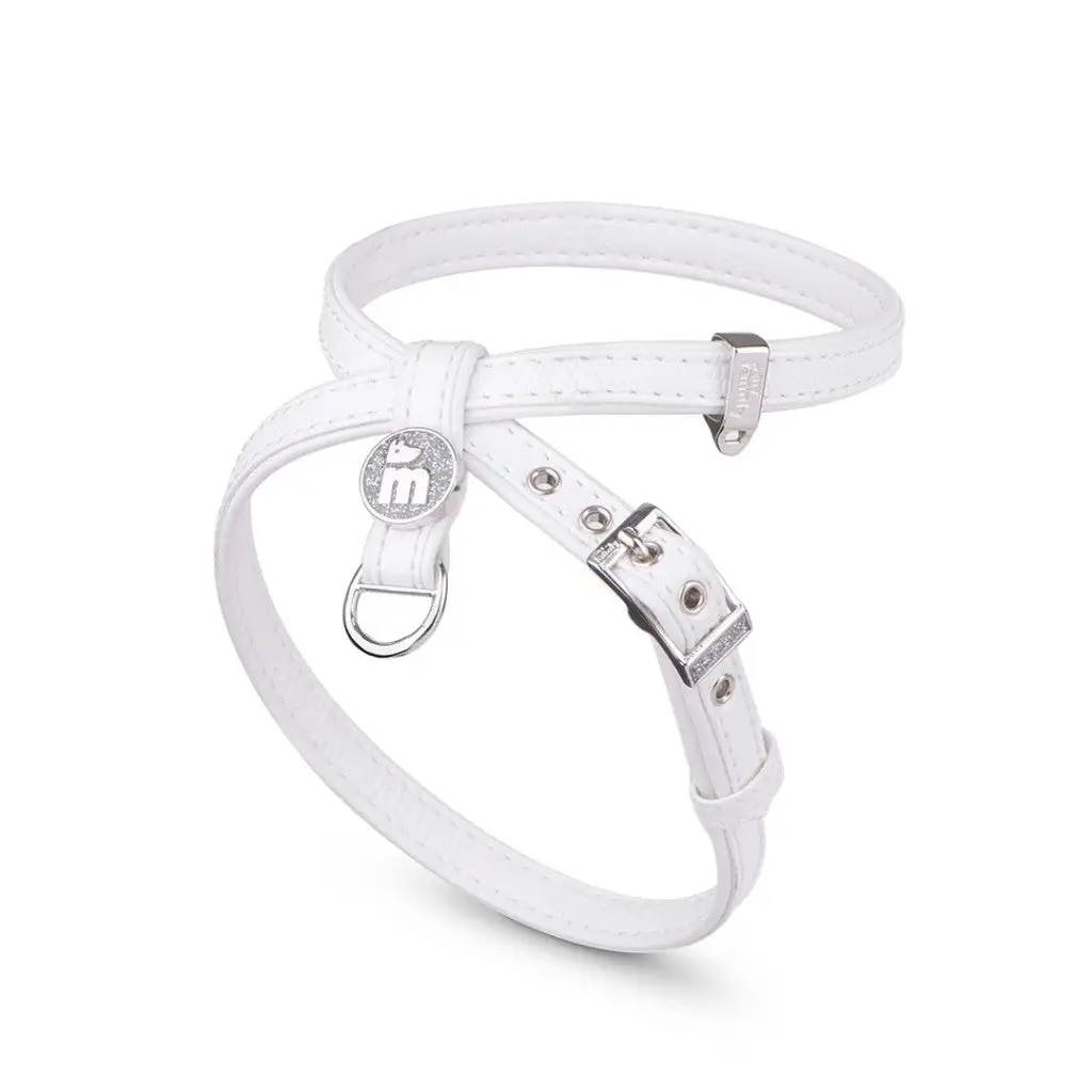 Ispirata al fascino senza tempo della Riviera Francese, la Pettorina X Saint Tropez combina stile e praticità per offrire un accessorio di lusso ai tuoi amici a quattro zampe. Realizzata in fibra sintetica resistente, è impreziosita da finiture in bronzo bianco e dettagli glitterati, che donano un tocco raffinato e glamour.