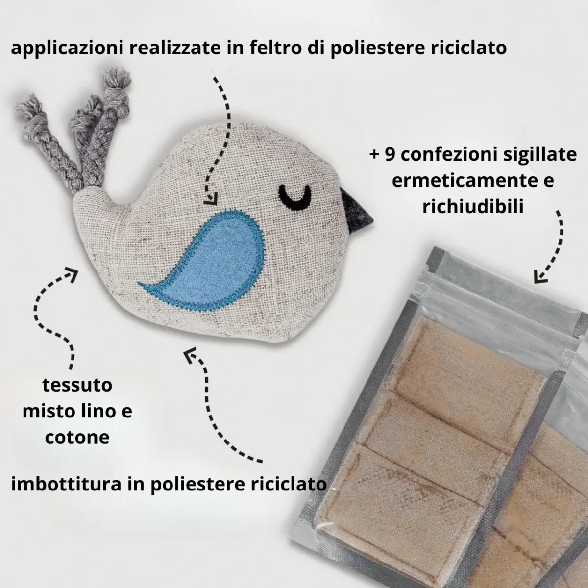 โœ…ROBUSTO, IGIENICO E SOSTENIBILE: i giocattoli sono realizzati con un mix di lino e cotone di alta qualitร  e sono imbottiti con morbida ovatta di poliestere riciclato.