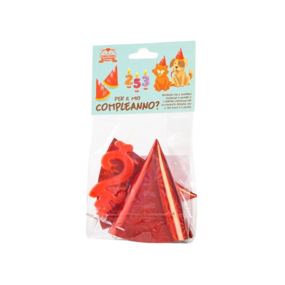 Per il mio compleanno? Candelina Numero 2 + 2 Cappellini per Cani e Gatti