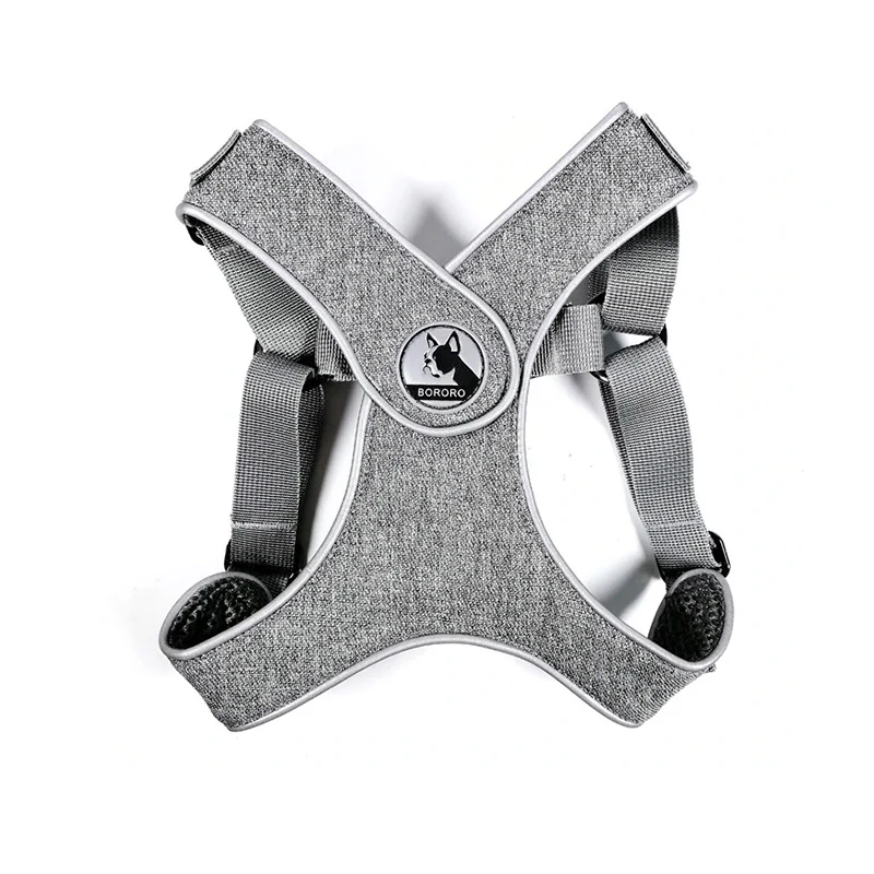 Pettorina a H in nylon di colore grigio oppure rosa, costituita da una rete traspirante.