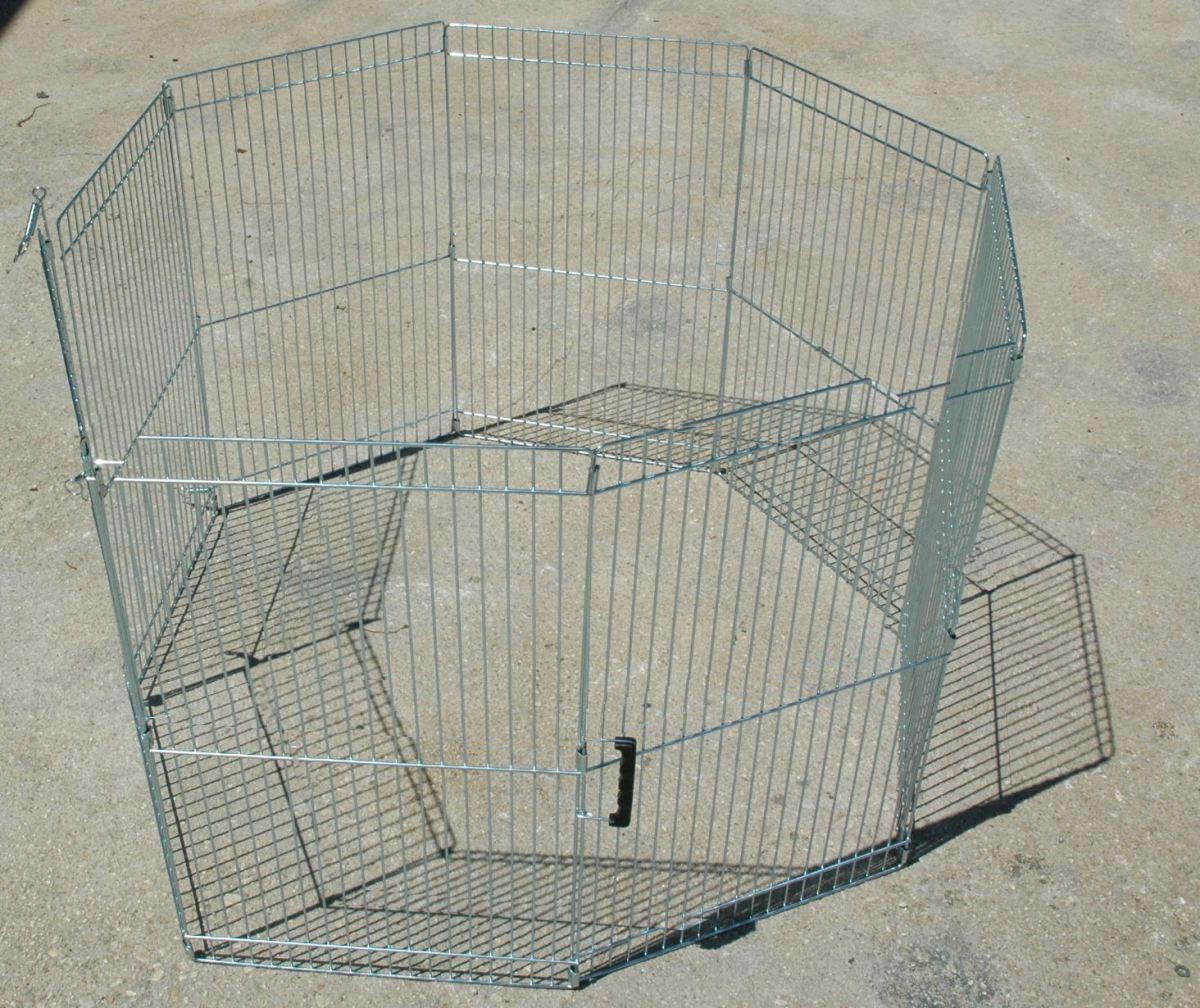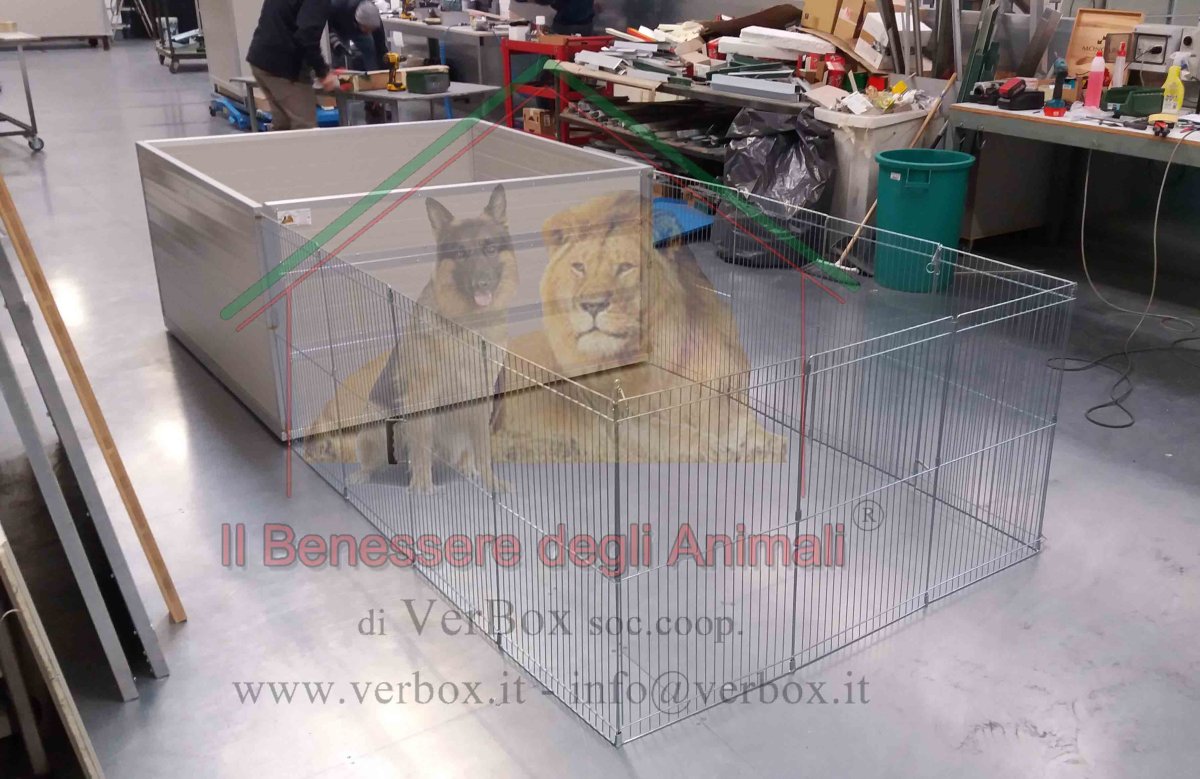 CARATTERISTICHE: – 8 pannelli, ogni pannello cm 45.50x74h, diametro filo 4mm zincato – un lato apribile e richiudibile mediante asta filettata. – chiusura a valigetta Il recinto può essere ampliato con una ESTENSIONE composta da n°3 pannelli delle stesse dimensioni (cm 45.50x74h,), asta filettata compresa Prezzo: 8 lati: € 66,00 + iva (€ 80.52 ivato) estensione a 3 lati: € 25,00 + iva (€ 30.50 ivato)