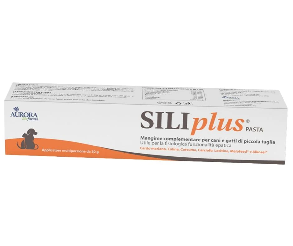 A base di cardo mariano, colina, curcuma, carciofo, lecitine, Melofeed® (polpa di melone liofilizzata ricca in superossido dismutasi) e Alkosel® (lievito inattivato ricco in selenio organico), Siliplus rappresenta un valido supporto per il sostegno della funzionalità epatica del cane e del gatto da addizionare alla normale alimentazione quotidiana.
