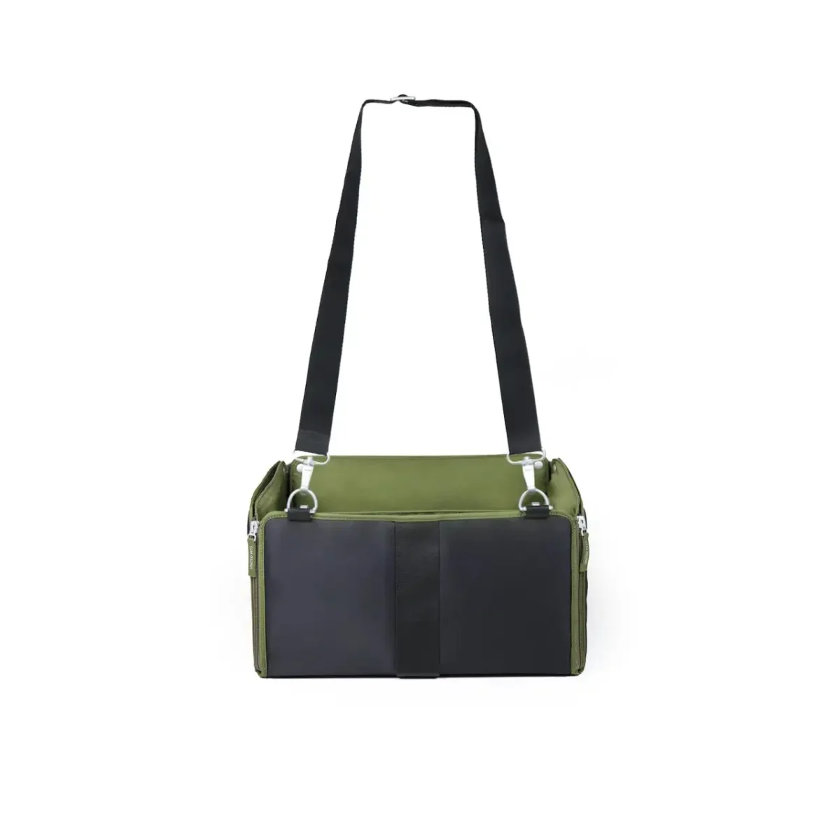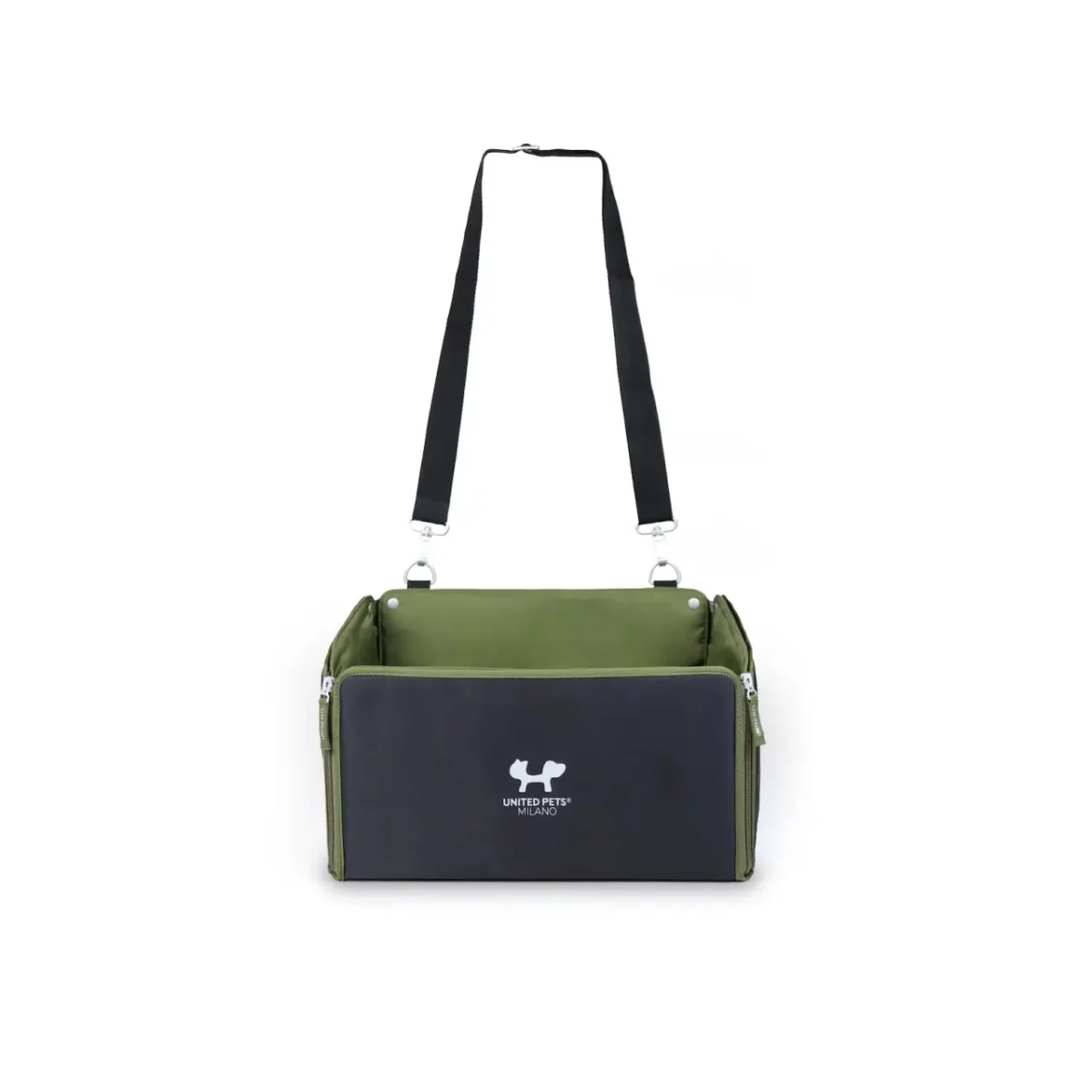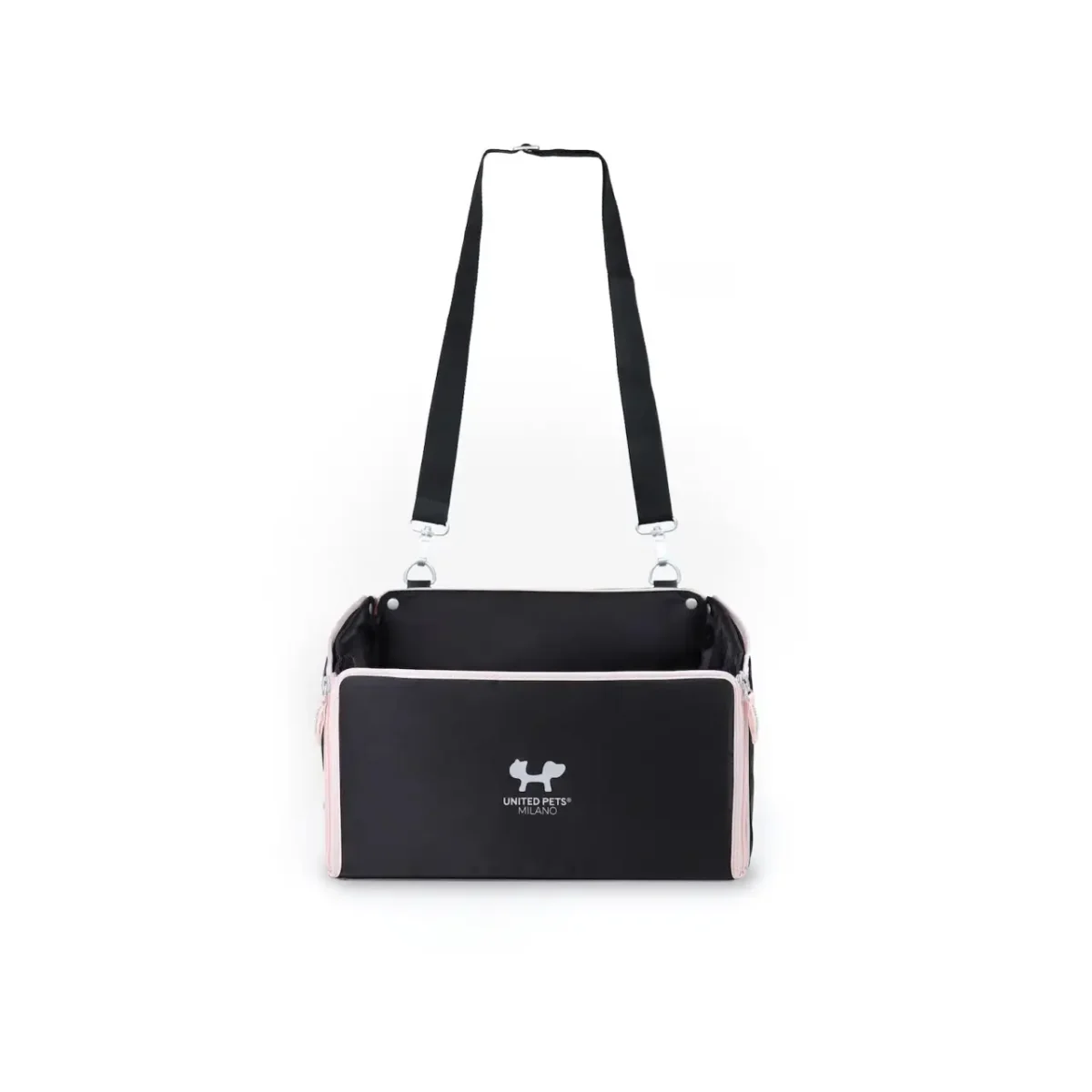 Facilmente richiudibile, presenta due moschettoni di sicurezza per agganciare la pettorina del cane e una fodera interna estraibile e lavabile a mano.
