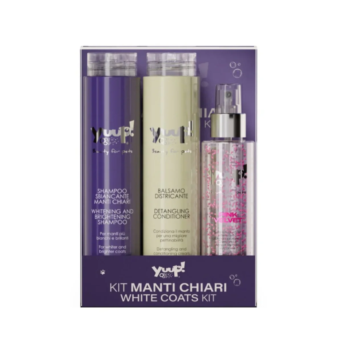 Kit di prodotti per cane e gatto, specifico per la cura e la bellezza dei manti chiari