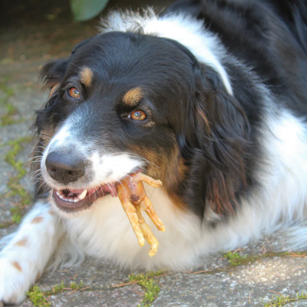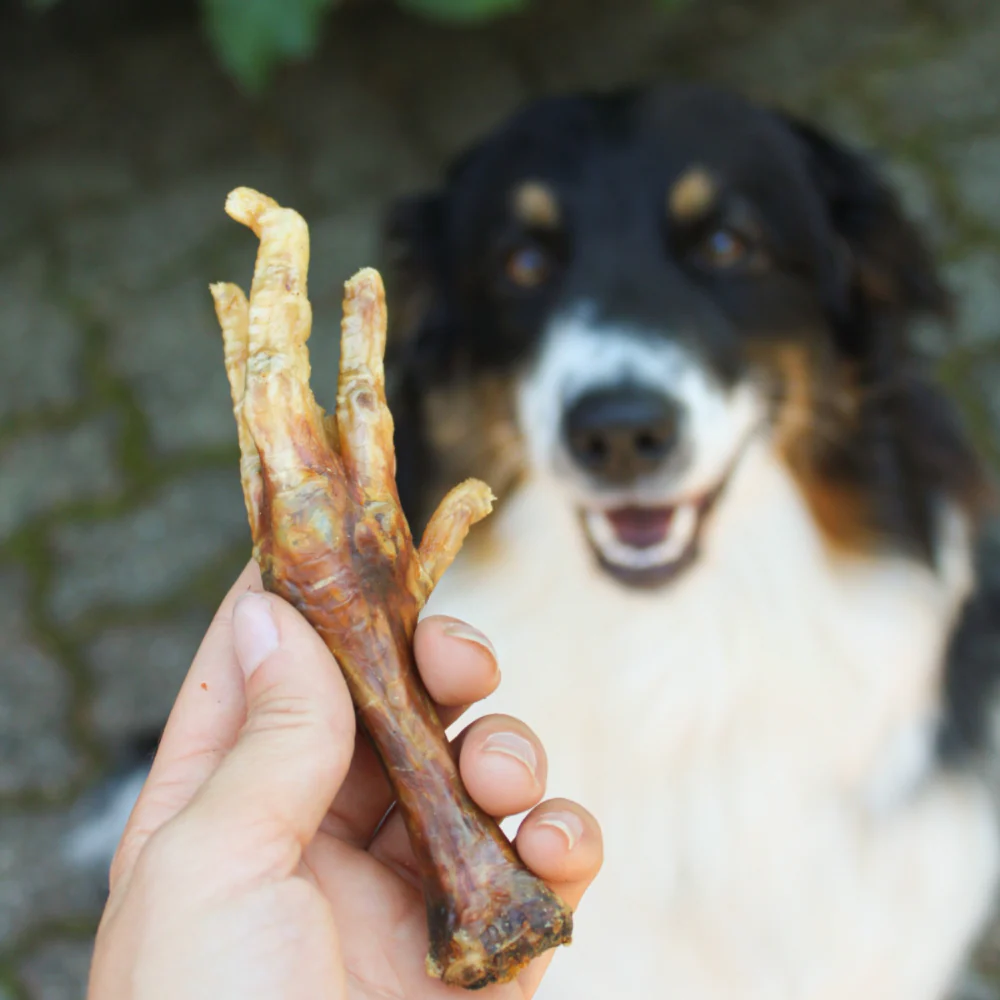 Le zampe di gallina essiccate sono uno snack naturale e croccante, ideale per favorire l’igiene dentale e soddisfare il bisogno di masticazione. Ricche di collagene e glucosamina, supportano la salute di ossa, articolazioni e pelle.